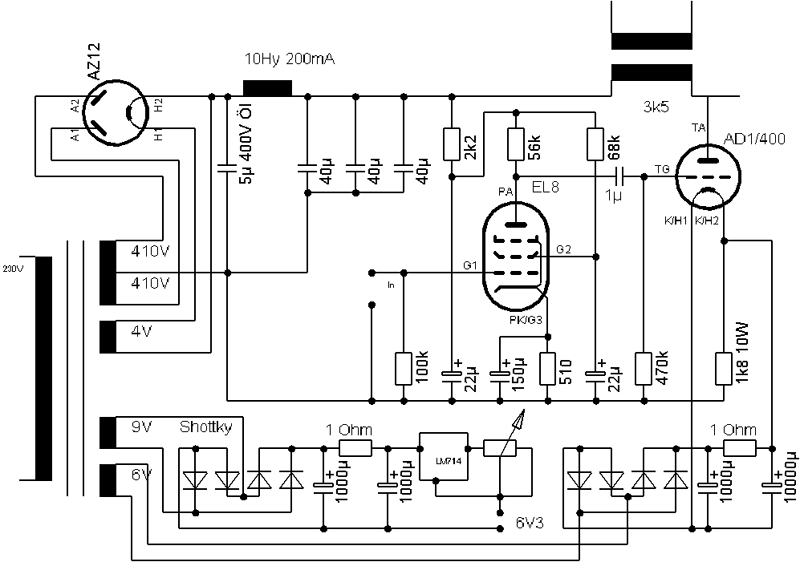 Der Gleichrichter ist eine Loewe AZ12 (was sonst?), zum Filtern gibt’s eine 10Hy - Drossel und einige Ölpapier -