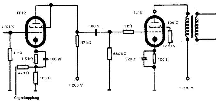 und entsprechend die Schirmgitterspannung auf 270 Volt erhöht. Die EF12 ist verstärkungsmäßig