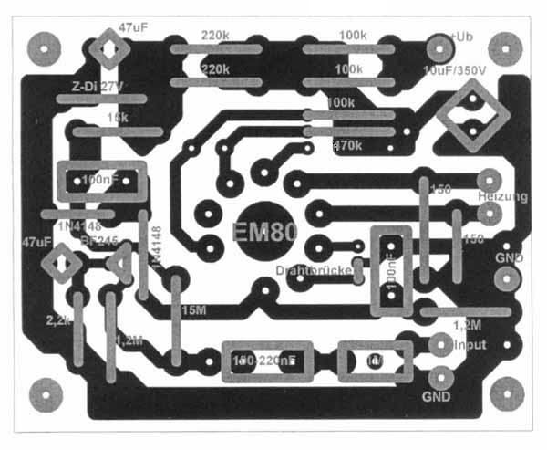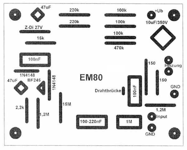 Die nachfolgenden Bilder zeigen die Bestückung der Platine, zuerst für die EM 80.
