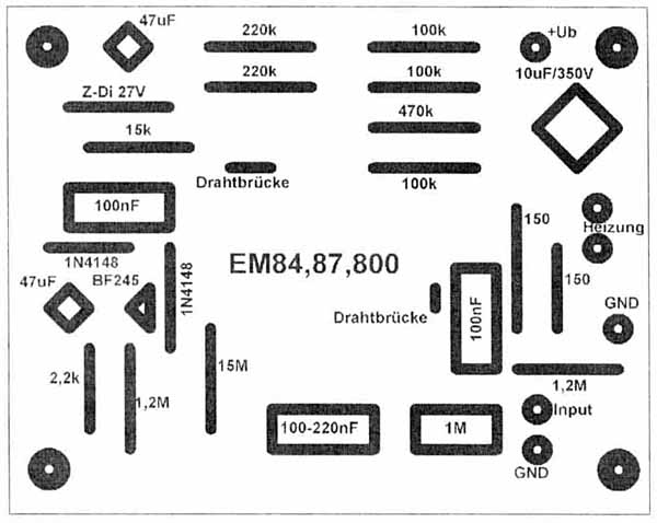 lötet die Widerstände entsprechend richtig direkt auf die Platine. Dann muß allerdings bei EM 84, 87, 800