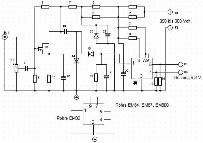- Bei EM 84, 87, 800 (wie im Schaltbild) ist Pin3 Masse, bei der EM 80 aber Pin2 !