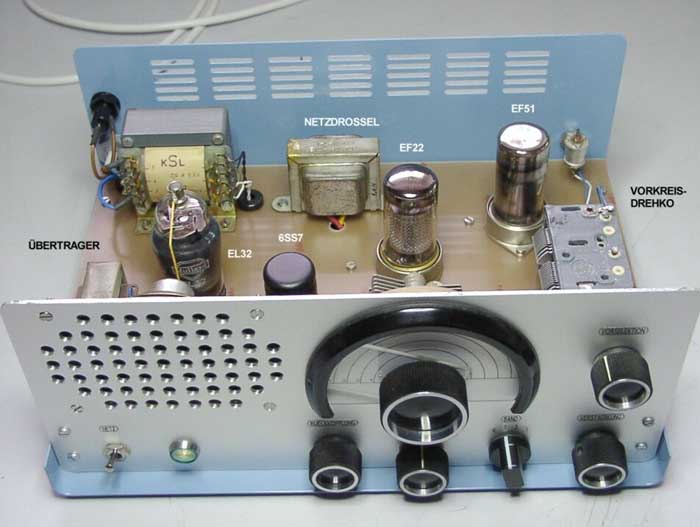 Die steile, regelbare Pentode EF 51 übernimmt die HF-Verstärkung und ist an der Anode drosselgekoppelt.