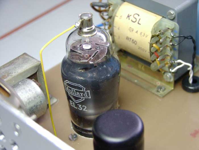 Als Leistungsverstärker kommt eine EL 32 zum Einsatz, die bei 150 V Anodenspannung max. 1,5 W NF-Leistung erzielt. Sie