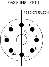 auf den Oktal-Sockel elektrisch identisch mit der EL 2, einer Pentode mit geringen Heizstrom von nur 0,2 A.