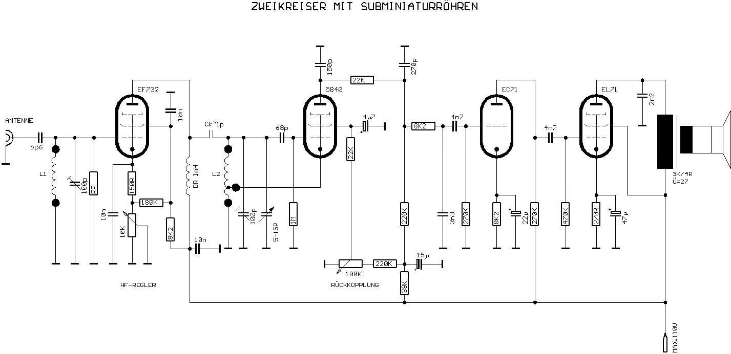 Die nachfolgende EC 71 bringt den NF-Pegel auf ordentliche Werte zur Vollaussteuerung der EL 71.