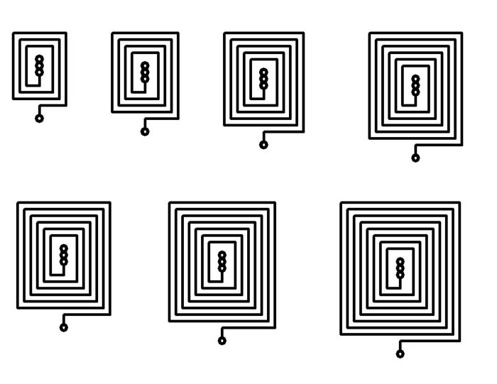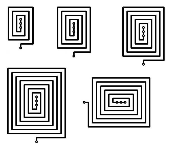 Ich habe die folgenden Spulen mit S-Layout gezeichnet und dann geätzt, mittels verschiedener Cs und Dipper /