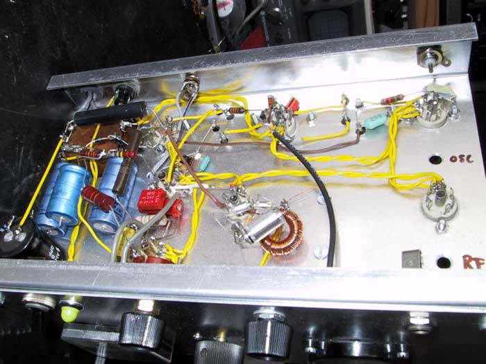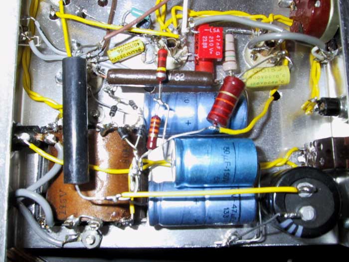 Die Verdrahtung ist freitragend, Massepunkte sind an den Röhrensockeln mittels Lötösen angebracht.