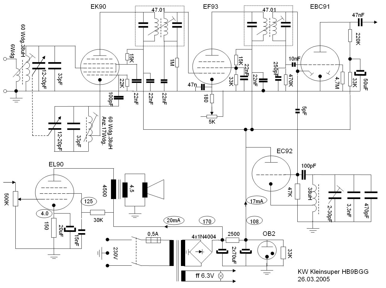 Volt. Alle Röhrenspannungen ausser NF Endstufe sind mit 150 V stabilisiert. (Modifikation auf 105 Volt für