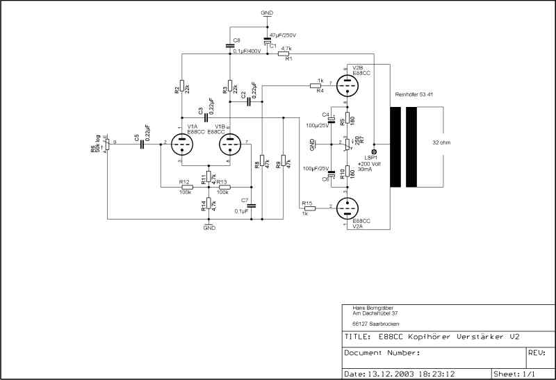 Alles fing an mit einer "Schnapsidee" und endete letzt endlich in dem hier vorgestellten Gegentakt- verstärker. Das "Verstärkerchen" hat ausreichend Leistung um auch etwas Leistungshungrige Kopfhörer zu versorgen. Durch die Gegentaktschaltung ist Brumm absolut kein Thema. Für die Dimensionierung der Schaltung habe ich eine für Röhren extrem niederohmige Variante gewählt. Das brachte mir folgende Vorteile : - Die Phasenumkehr