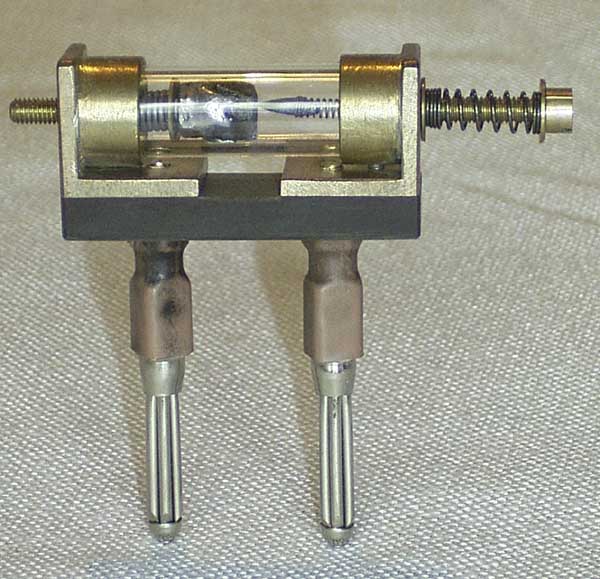 Schaft in einer 2mm Durchmesser Druckfeder, die wiederum mit der Stellschraube verbunden ist. Die Aufnahme des Kristalles