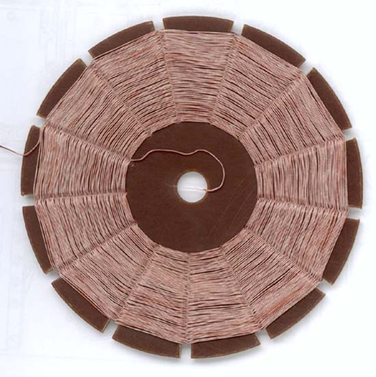 Das näcshte Bild zeigt eine bereits fertig gewickelte Spule mit 124 Windungen (62 Wdg. pro Seite) :