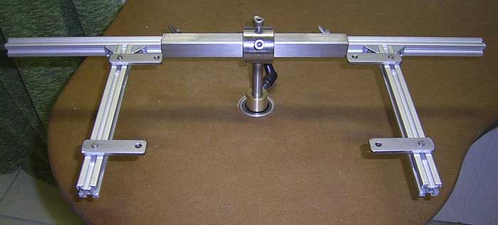 Eine Lagerung mit zwei Kugellagern mit der Werkbank verschraubt macht das Ganze um 360 Grad drehbar. Boschprofile, etwas