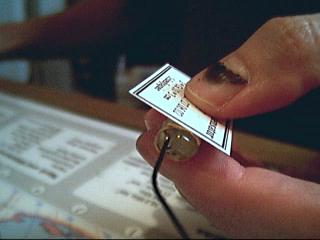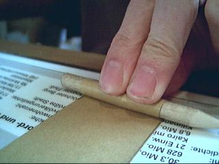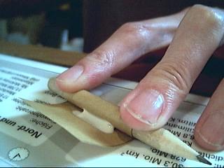 mit einem sauberen Tuch die Folie auf den Papierstreifen feststreichen.