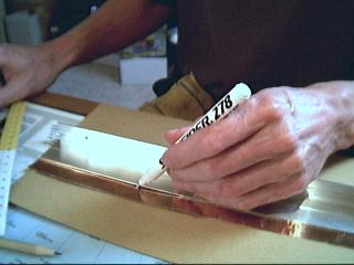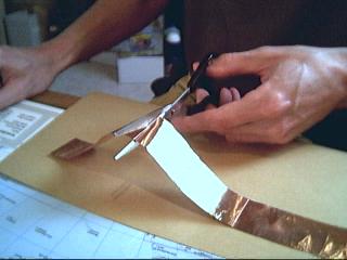 Anzeichnen der Kupferfolie auf die geplante Breite (ca. 3cm)