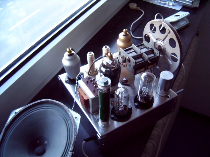 Verdrahtung des Audions | Endstufe von oben, dahinter die Audionröhre |
