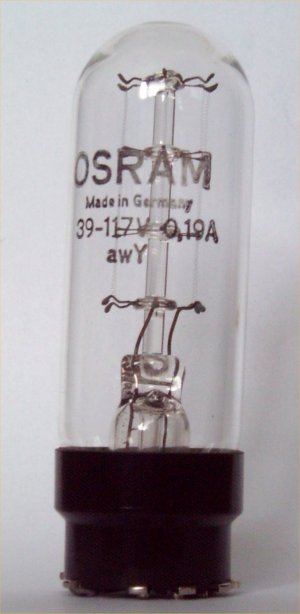 Eine gut aussehende Serie mit 72 W Belastbarkeit fand ich bei RS-Components, allerdings waren nur die Werte 470 Ohm und 1 kOhm erhältlich. Da errinerte ich mich an einen Eisenwasserstoffwiderstand 39 - 117 V 0,19 A den ich einmal günstig bei Ebay erworben habe.