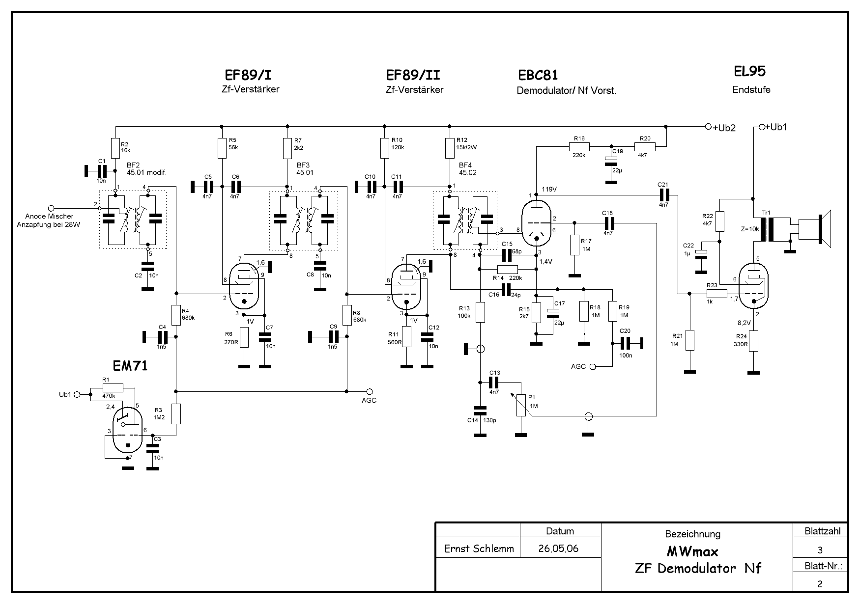 Bei Verwendung einer Triodenmischstufe muss das Filter, beispielsweise durch Anzapfen des Primärkreises an den wesentlich niedrigeren Innenwiderstand der Triode (einige kΩ, ECC81 ca.11 kΩ), angepasst werden.