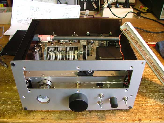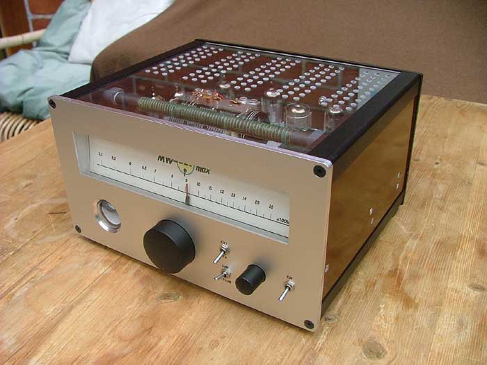 Alle Filter, Trafos, Spulenkörper und die 200mm-Ferritantenne stammen von Reinhöfer-Electronic, die Frontplatten, Plexiglasabdeckung und die Chassisplatte von Schaeffer- Apparatebau, die Platine des Eingangsteils von GS Electronic- Platinenservice und der Dreifachdrehko von Oppermann. Die Eckprofile sind Meterware von Fischer-Elektronik.