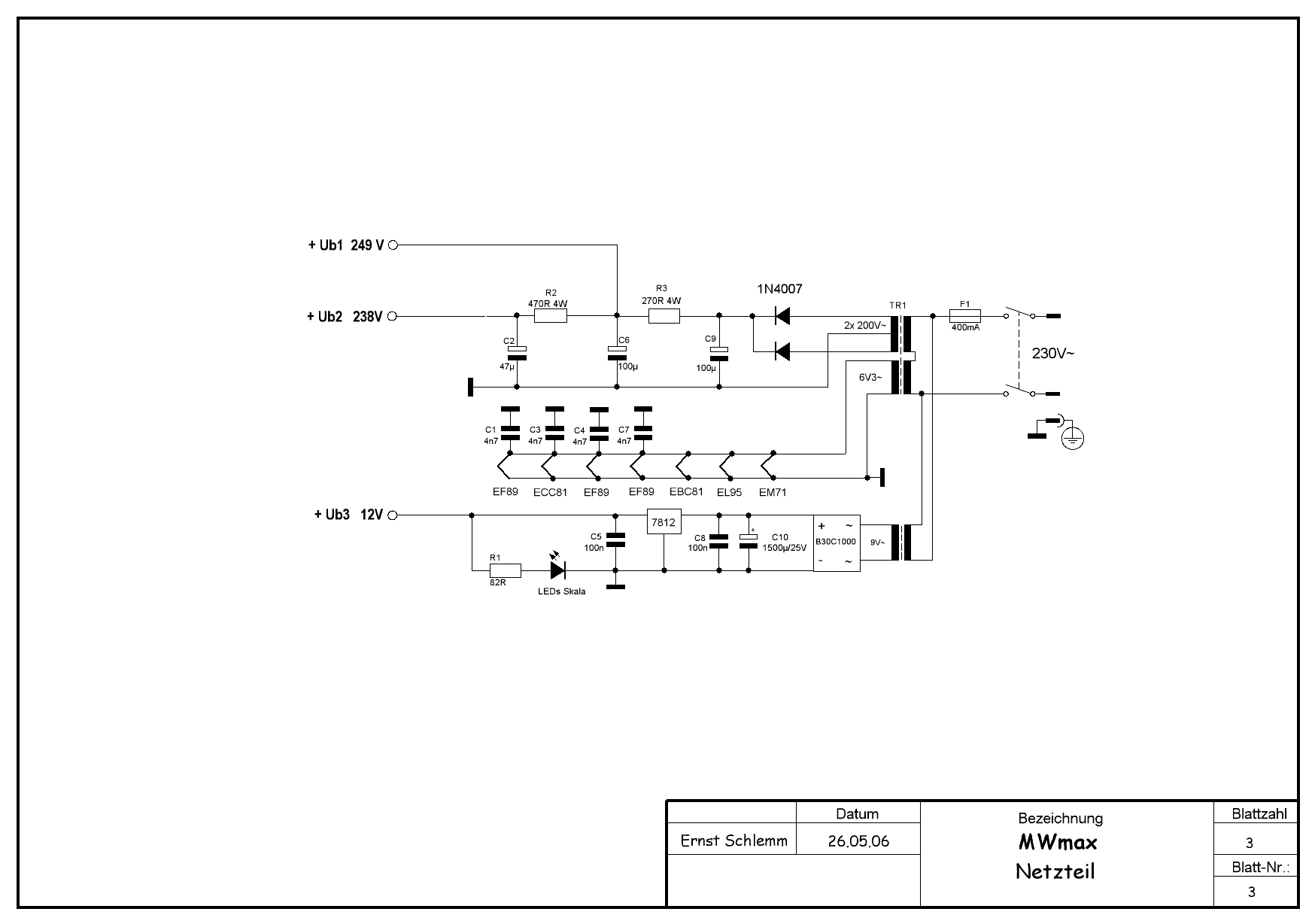 Dieser 663 kΩ (nächster Wert 680 kΩ) Belastungswiderstand ist als Gitterableitwiderstand ausgebildet.