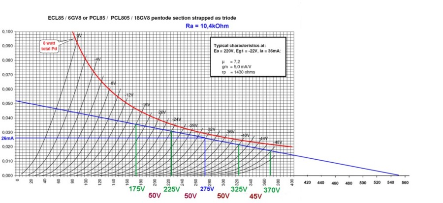 Das sind jeweils 50V Anodenspannungsänderung bei 8V