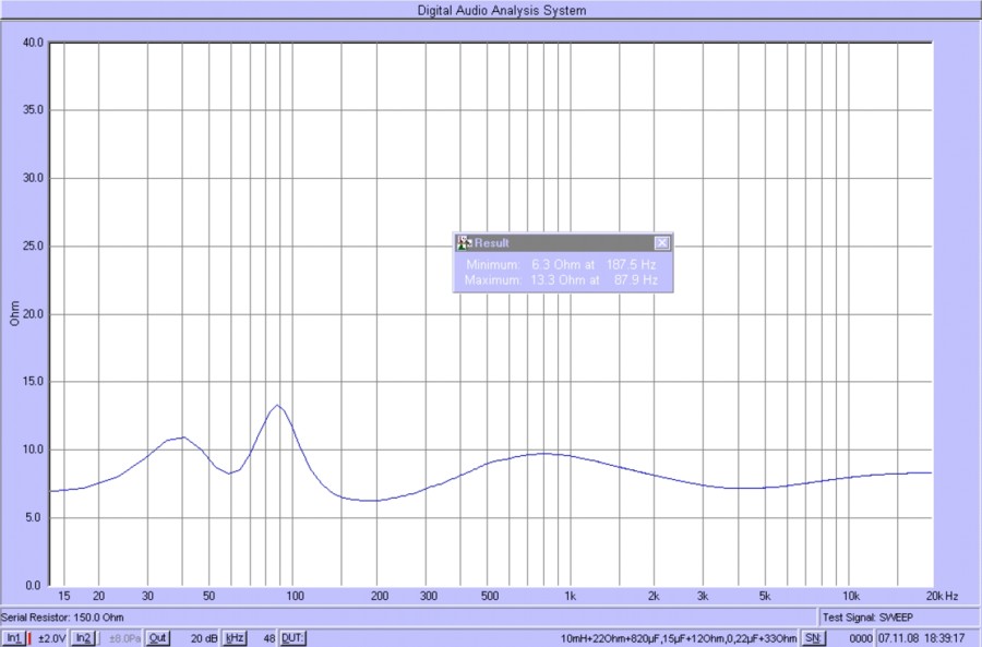 Hier noch mal der Impedanzverlauf der Lautsprecherbox. Bild15
