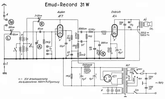 Aus der Vielzahl von Schaltplänen habe ich mich für den von EMUD-Rekord 31 W entschieden. Ich wollte die Besonderheit