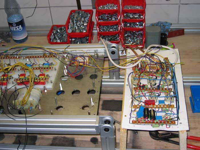 heiß. Vorab habe ich einige Bauteilkorrekturen an der Schaltung vorgenommen und vor allem die Bremsgitter verdrahtet,