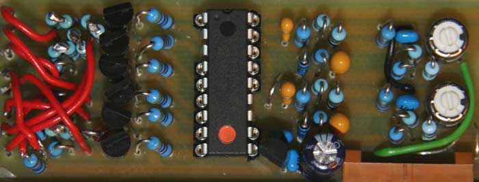 Die Steuerschaltung selbst ist völlig problemlos aufzubauen (wer dicke Finger hat, braucht eine Pinzette ;-). R24, R25, R30, R31, R32 habe ich geteilt in je zwei 0,6 W - Typen, es ist kein Platz fur klobige Widerstände.