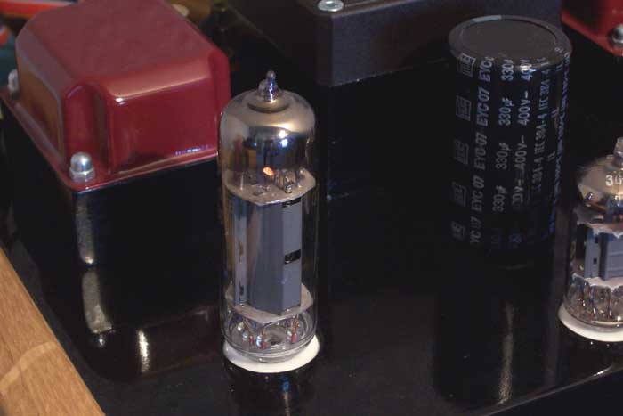 Die Endstufe mit einer russischen EL 84M - eine sehr feine Röhre - arbeitet in Standardbeschaltung im UL-Betrieb. Wer