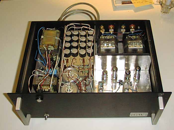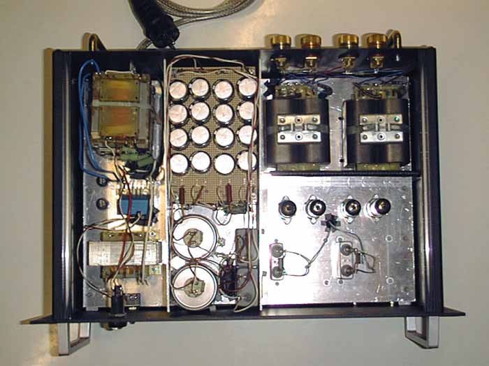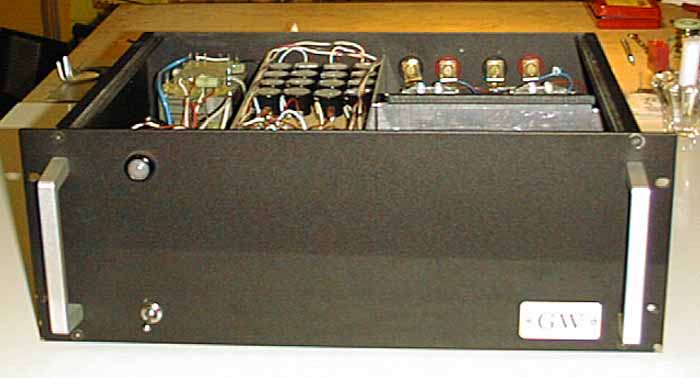 ein 19" Gehäuse mit 4HE und 300mm Tiefe gut gefüllt (siehe Bild). Bei dieser Endstufe habe ich außerdem auf strikte Trennung