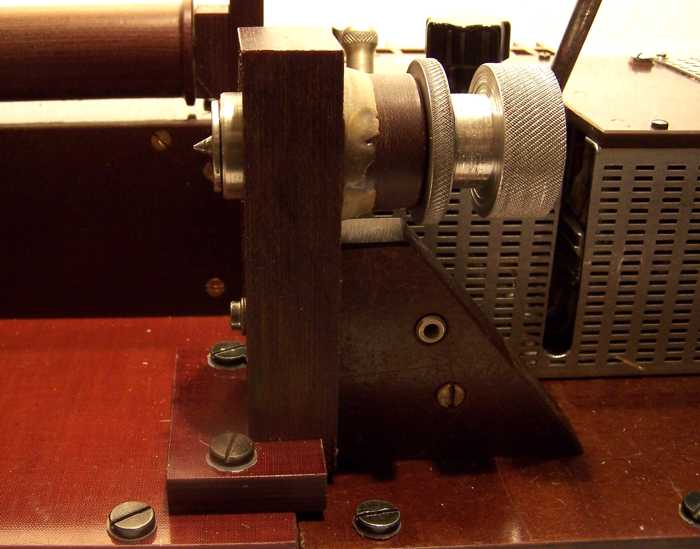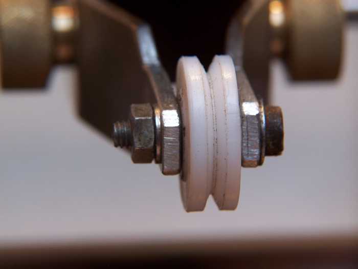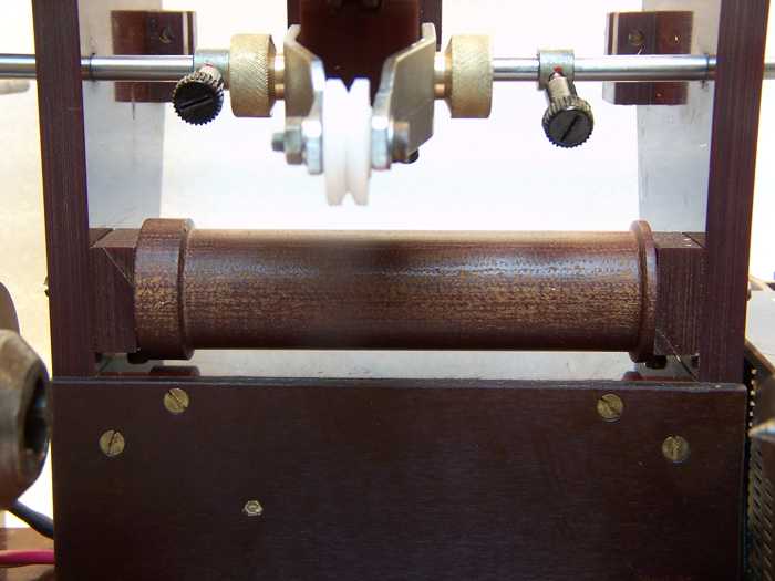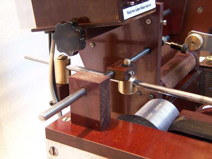 Die letzte Rolle vor dem Trafo. (Teflon) Deren Halter kann in der Höhe verstellt werden.