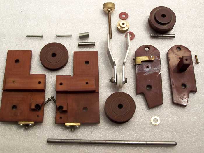 Die Einzelteile der Drahtführung. Die linken Teile sind zwar gefräst, können aber auch aus einzelnen Teilen