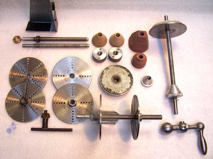 werden. Links oben der Hilfswinkel vom Steuergehäuse, darunter einige Wickelachsen und einige Planscheiben. Unten-Mitte