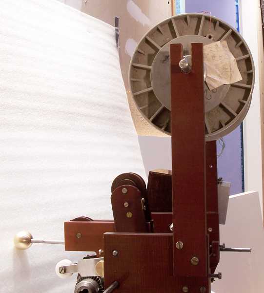 Der Handantrieb der Vorratsrolle zum aufwickeln, wenn Trafos abgewickelt werden. Soll durch den Motorantrieb links ersetzt