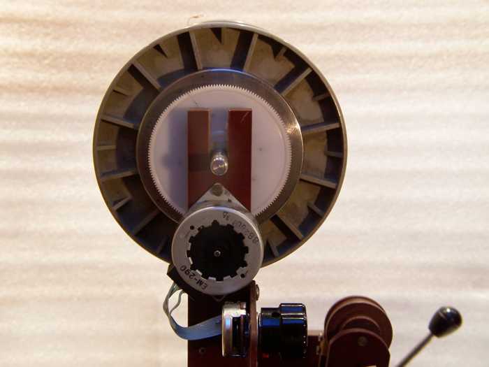 Kunststoffring hat ein aufgeklebtes Stück Reflexfolie (gerade nicht zu sehen), das die Optokoppler aktiviert. (Darunter
