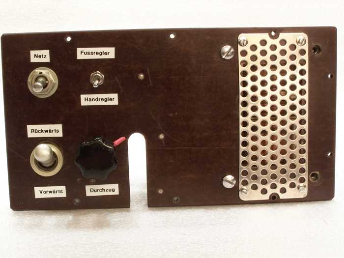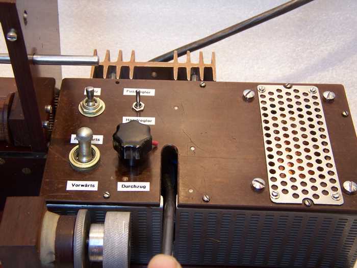 Der große Schalter (alter Russe) schaltet die Drehrichtung um, daneben der Netzschalter.
