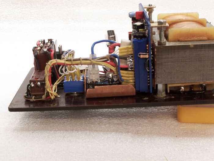 Die Steuerbaugruppe im Montagezustand. Dazu habe ich einen Montagewinkel angefertigt, der mit 2 Trafobefestigungsschrauben