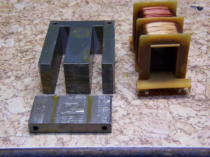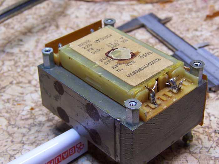 Der Trafo. Er war gleich der erste Wickelkandidat für die rekonstruierte Maschine, da er zu warm wurde. (Wer weiß