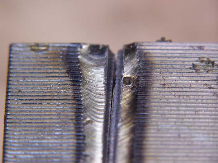 Schweißnaht mit Bügelsäge aufgeschnitten.