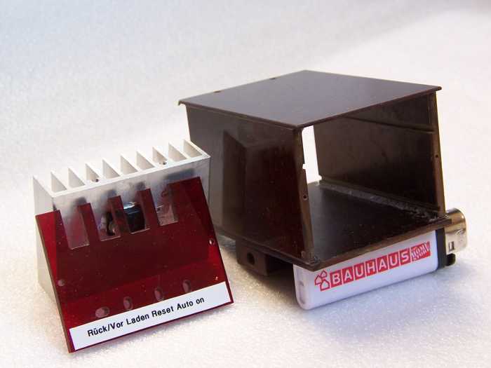 Der Beginn des Anbaus (Netzteil und Steuergehäuse). Hier die mechanische Lösung des Handreglers.