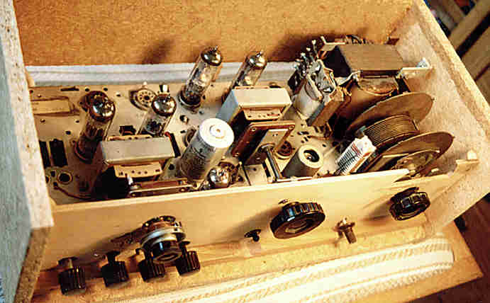 Hier nun die Fotos, die ich vom Hans erhielt. Sie zeigen das Gerät mit abgenommener Frontplatte und offenem