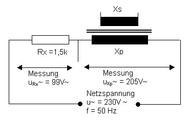 Legt man die Netzspannung direkt an Xp, dann erhält man ü = uXp/uXs = 230/10 = 23.