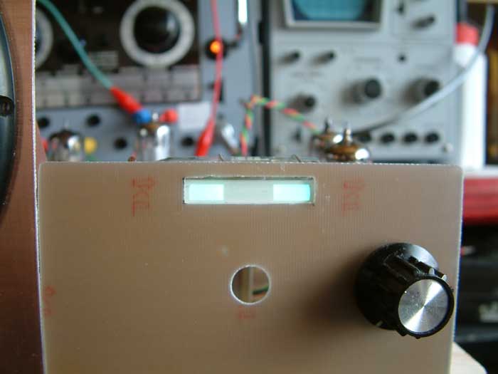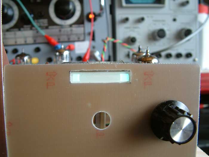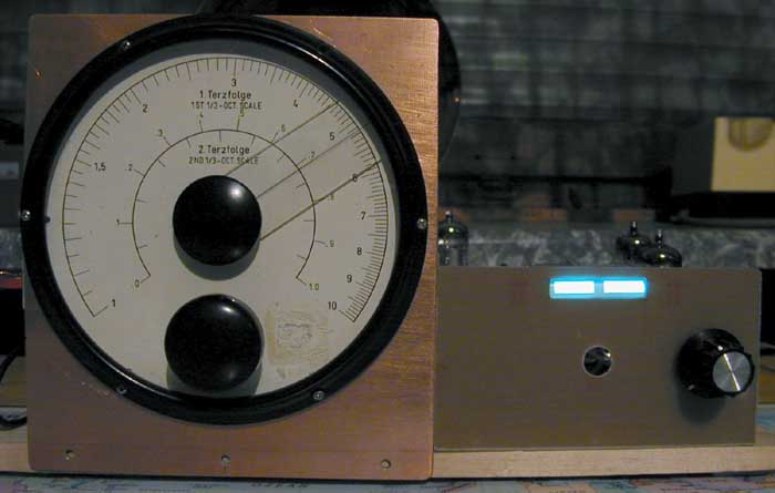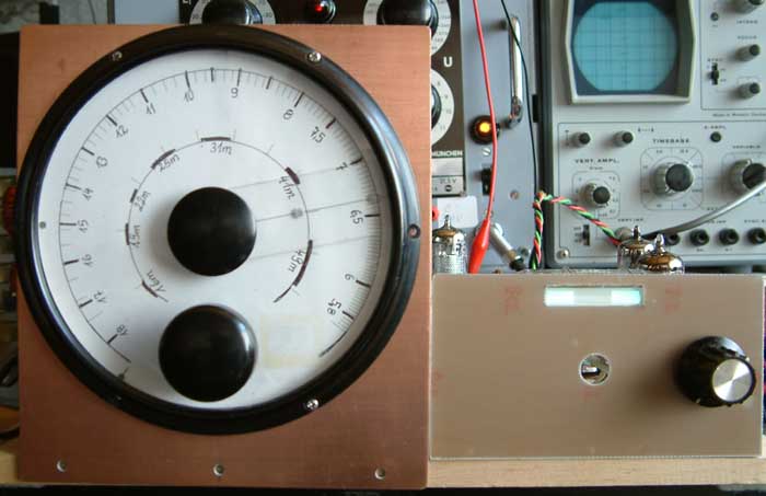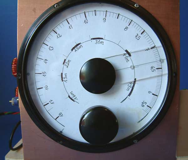 Die Skala stammt vom Flohmarkt und ist aus einem kommerziellen Meßgerät. Der 270-Grad Drehradius wird durch ein