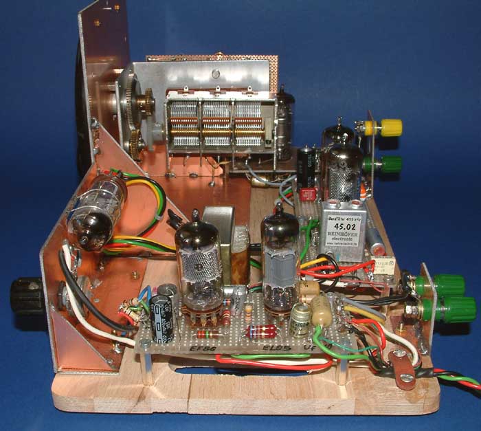 Der von mir entworfene Empfänger ist ein 6-Röhren Einfachsuper mit 455KHz ZF, den ich auf einem