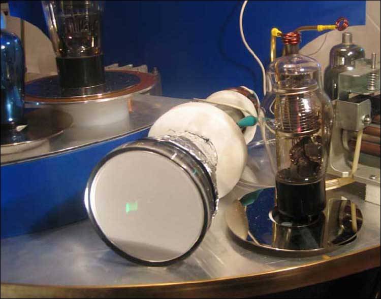 Oszillatorröhre (TM ‚R’) ‚bei der Arbeit’ zu sehen.
