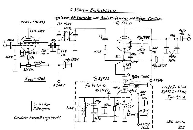 für SSB- Empfang sein, deshalb wollte ich auf einen Produktdetektor nicht verzichten. Um dabei mit 4 Röhren