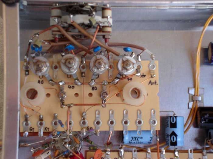 Für die Bandumschaltung stand mir ein Keramikschalter mit nur einer Ebene mit 4 Umschaltkontakten zur Verfügung.