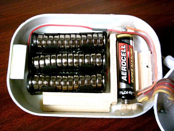 Die 1T4 braucht etwa mind. 50 V um laut zu werden. Deshalb nahm ich drei, besser vier Mignonhalter, die mit je 12 Knopfzellen