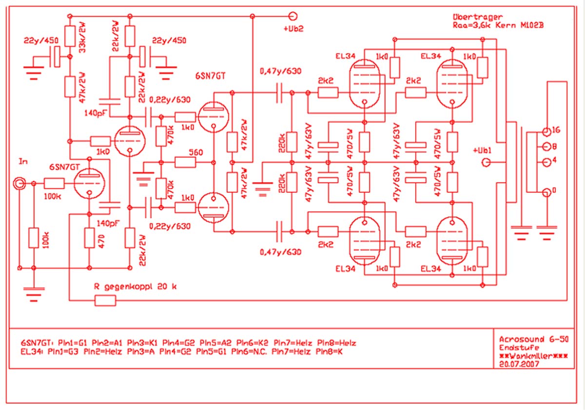 nach ist der Amp als "Williamson-Schaltkreis" einzustufen. Was heißt 6-50 ? 6 Röhren, 50 W sin.