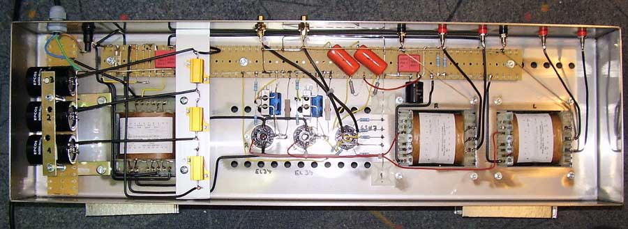 Die EL 34 ist als Triode geschaltet und arbeitet im Autobias Class A Betrieb mittels Kathodenwiderstand. Die 6SN7 enthält